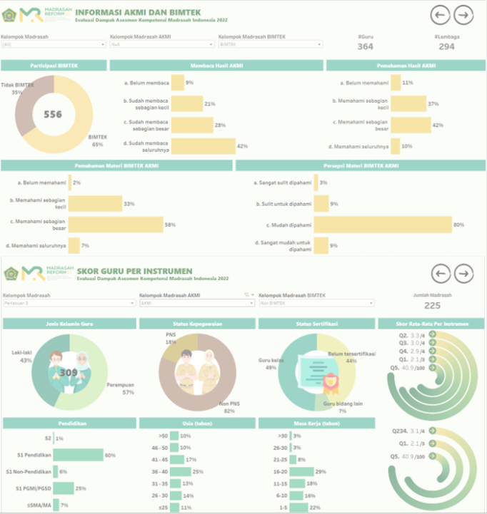 The MoRA administers the Indonesian Madrasah Competency Assessment (AKMI), which measures the numeracy, reading, science, and sociocultural capabilities of all students at the MI, MTs, and MA levels. AKMI serves as both a benchmark for determining whether student capacities have been successfully developed through madrasah education and a guide for making the diagnosis for other educational system improvements. The result of this study is used as an assessment tool for refining the AKMI and BIMTEK implementation.