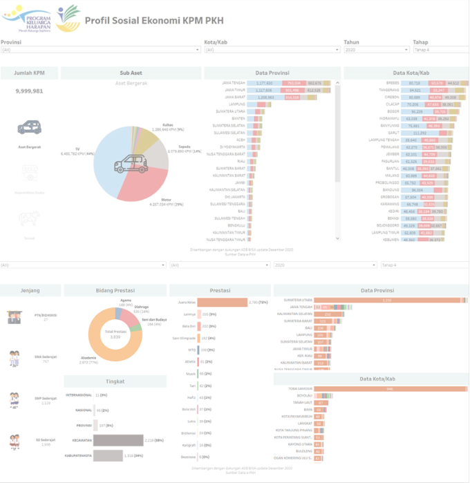 The Ministry of Social Affairs is implementing Program Keluarga Harapan (PKH), or Family Hope Programme. MOSA has to strengthen its implementation capacity by upgrading information technology systems, improving human resources management, ensuring adequate training of facilitators, and scaling up family development sessions to all PKH families. All data regarding PKH program is visualized in Tableau dashboard to easily digest which furthermore will be used to develop capacity-building plan and suggest improvements in the communication strategy.