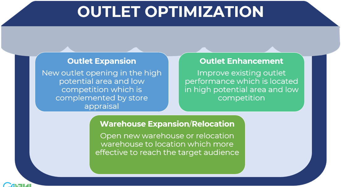 Outlet optimization aims to define expansion areas and optimize existing outlets to grasp the potential market