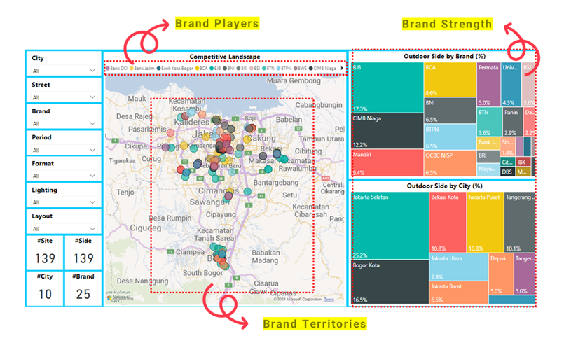 Analyzing competition in OOH usage in your brand industry or categories is very important, especially about competitor's OOH media usage, size, distribution and content image.