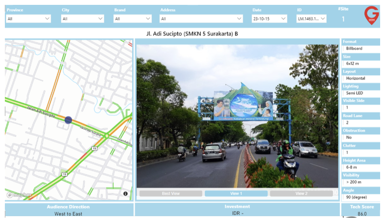 After seeing the Tech Site Review, still needed more information of each OOH sites? Full Site Review will gives you more than just technical aspect. It gives you information from geo-demography, POI, and traffics aspect.